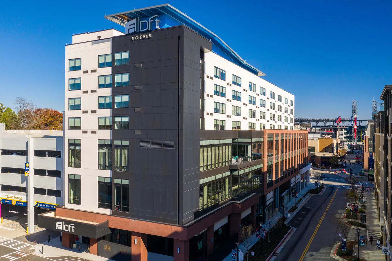 $239 to $519 /nightAloft Atlanta at The Battery Atlanta is pet friendly because it offers a lively yet comfortable environment that makes traveling with pets both easy and enjoyable. Located in a highly walkable entertainment district, the hotel is surrounded by wide sidewalks, open plazas, and pedestrian-only areas that are ideal for daily walks and short outdoor breaks with pets. The area allows pets to safely explore alongside their owners without the stress of heavy traffic.Guests traveling with pets can also enjoy nearby pet-friendly outdoor spaces such as the green areas throughout The Battery Atlanta, scenic walking routes near Truist Park, and trails leading toward the Chattahoochee River National Recreation Area. These locations provide pets with space to stretch, exercise, and enjoy fresh air while remaining close to the hotel.With modern, stylish accommodations, a welcoming pet policy, and a relaxed, social atmosphere, Aloft Atlanta at The Battery Atlanta ensures that pets feel just as welcome as their owners, creating a comfortable and memorable stay for the entire travel party.Note:there are restrictions on where pets are allowed, generally excluding food and beverage areas, as well as fitness and pool areas.pet must be Leashed, caged, or firmly held when in all common areas of the hotel