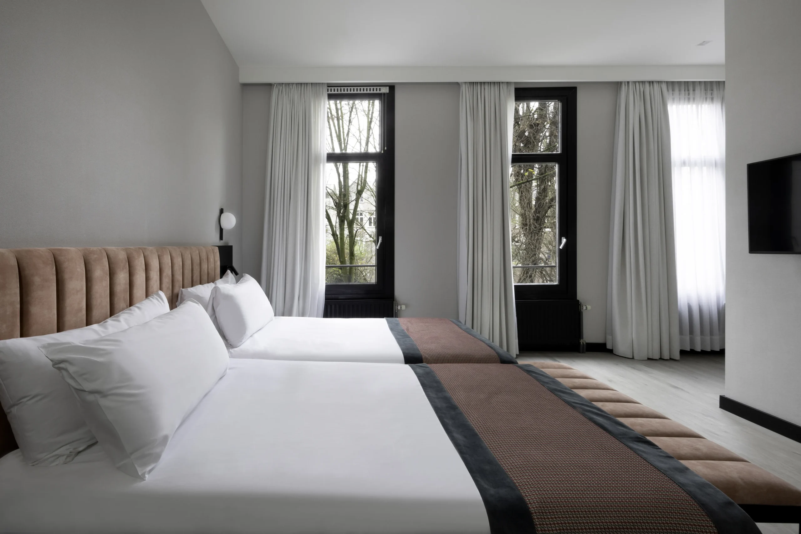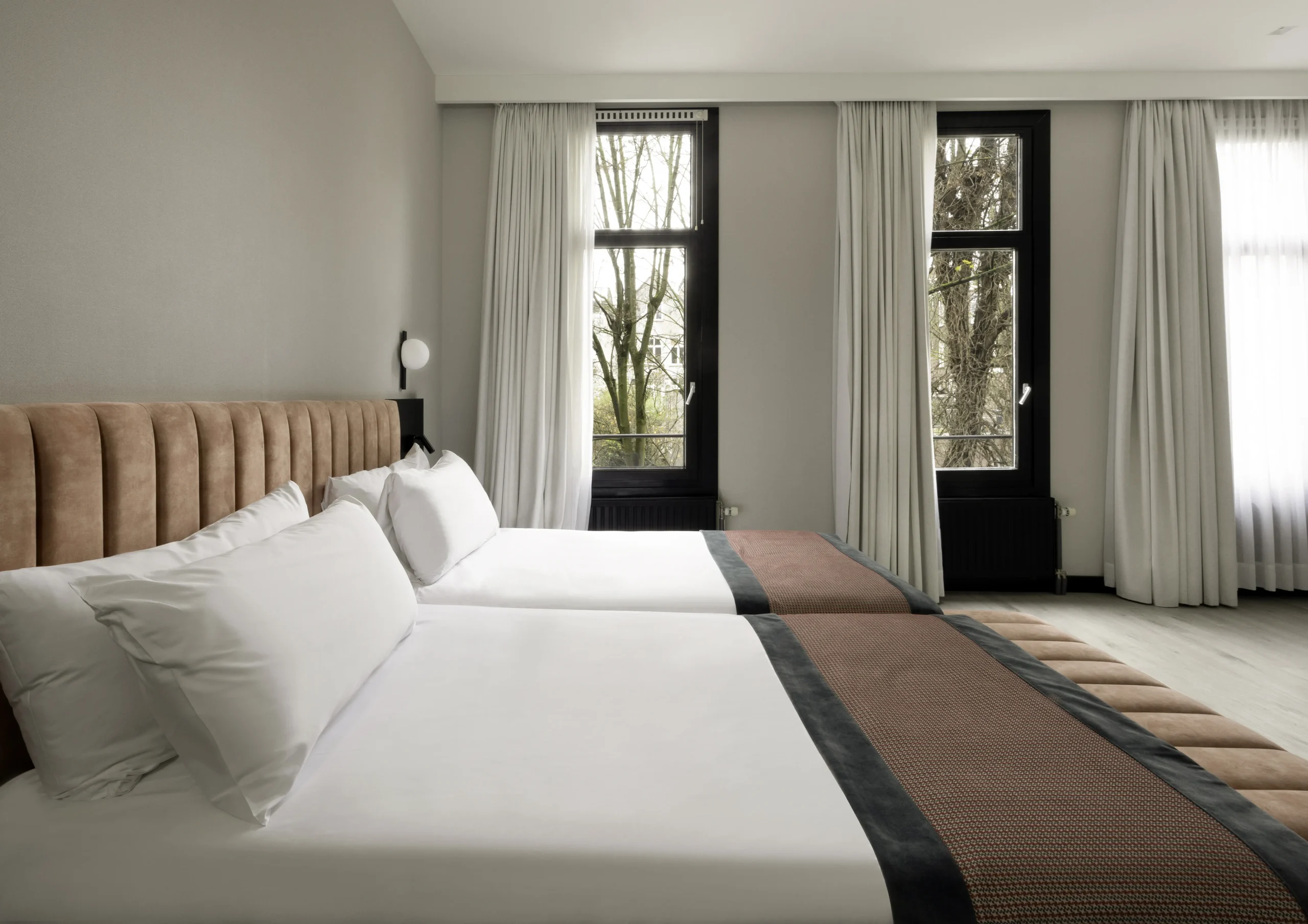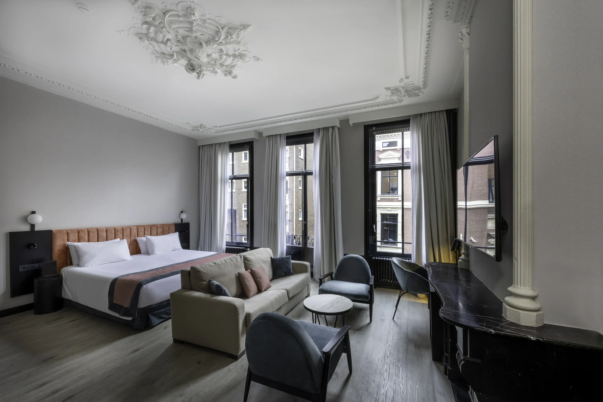 €103 to €317 /nightPositioned in the heart of Amsterdam’s cultural district, Catalonia Vondel Amsterdam offers a refined, calm retreat that’s particularly suitable for guests with pets. Its location near Vondelpark means that one of the best outdoor areas in the city is just a few minutes’ walk away — perfect for morning walks, leisurely afternoons, or quick outings before bedtime. The surrounding streets are safe and scenic, with minimal through-traffic and ample sidewalks for secure walking. The mild climate enhances the comfort of outdoor activities throughout most of the year. Inside, the hotel offers pet-friendly rooms that balance elegant décor with practical touches, such as space for beds and feeding areas. Staff maintain a professional approach to ensure smooth coordination between pet owners and other guests. The reception can provide information about nearby parks, pet supply stores, and dining spots that welcome pets. With its combination of sophistication, location, and hospitality, Catalonia Vondel Amsterdam ensures both comfort and convenience for travelers accompanied by their pets. Pet owner has to pay deposit of €200