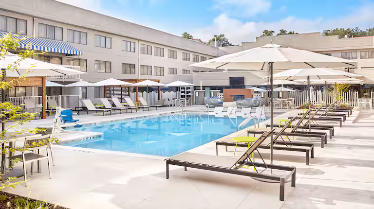 $112 to $250 /nightDoubleTree Suites by Hilton Nashville Airport offers a convenient pet-friendly environment, supported by the highly pet-accessible Nashville International Airport (BNA) nearby with its dedicated relief areas and hydration stations. The hotel welcomes dogs and cats up to 75 lbs and provides food and water bowls, outdoor courtyard access, and waste stations for comfortable breaks, making it easy to manage pets despite Nashville’s warm climate—best for early morning or evening walks. For more spacious outings, excellent nearby options include Two Rivers Dog Park and Shelby Bottoms Nature Center & Greenway, both just a short drive away and great for exercise and fresh air.