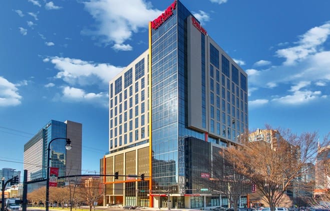 $160 to $500 /nightThe Drury Plaza Hotel Nashville Downtown is a pet-friendly property that welcomes up to two dogs or cats per room with a combined weight limit of 80 lbs, offering convenient access to nearby outdoor spaces like Riverfront Park, Music City Walk of Fame Park, and local dog parks for exercise. The hotel provides designated pet relief areas and complimentary waste bags, while maintaining a comfortable and safe environment with specific guidelines: pets must remain leashed or in a carrier in public areas, are restricted from high-traffic spaces such as the lobby and dining areas, and cannot be left unattended in guest rooms. Guests must acknowledge and follow these rules upon check-in.