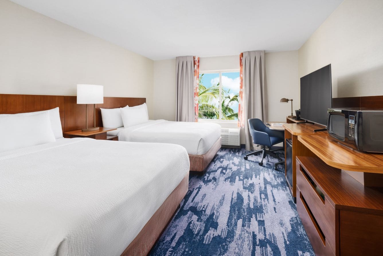 $100 to $200 /nightFairfield by Marriott Inn & Suites Las Vegas Stadium Area is a pet-friendly option near Allegiant Stadium, offering designated pet rooms for cats and dogs (typically up to 25 lbs) with a $100 per-stay fee, and some locations may provide basics like pet beds, bowls, or treats—details should be confirmed when booking, including unattended-pet rules. The setting is urban, with sidewalks and the Stadium Walk suitable for short relief breaks, but large grassy areas aren’t nearby, so longer outings usually require a short drive. For better outdoor time, Sunset Park and Red Rock Canyon National Conservation Area are popular nearby options, while all walks should be planned carefully around Las Vegas’s extreme heat and hot pavement.
