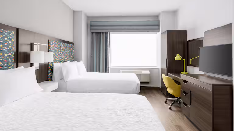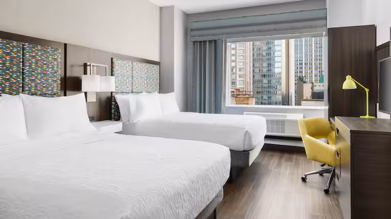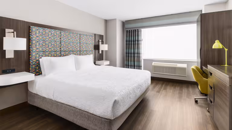 $140 to $600 /nightWe are a pet-friendly hotel because our Hampton Inn Manhattan–35th Street location gives guests a convenient, climate-controlled base to explore New York City with their pets while staying close to major attractions, transit, and walkable neighborhoods. Nearby green spaces like Bryant Park for quick walks and Central Park for longer outings are easily accessible on foot or by public transport, making daily routines manageable in an urban setting. As part of Hilton’s pet program, we welcome dogs and cats with applicable policies and fees, offering a comfortable stay while encouraging owners to plan responsibly and confirm specific pet amenities directly with the hotel.