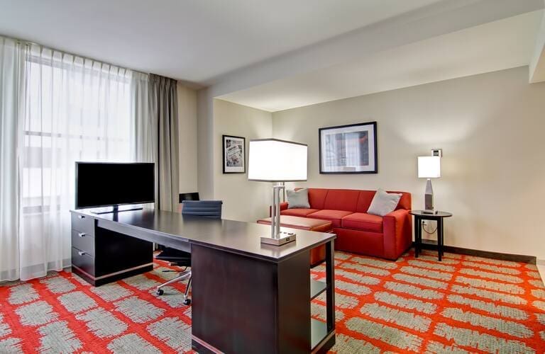 $101 to $250 /nightThe Hampton Inn & Suites Cincinnati Midtown Rookwood is a pet-friendly hotel that is part of the larger Hampton Inn brand, which generally welcomes pets (dogs/cats) under their franchise model, offering a convenient, welcoming stay for travelers with furry companions near local attractions like Rookwood Commons. The hotel follows brand guidelines, typically allowing up to two dogs or cats (check for weight limits, often 75 lbs), usually with a fee (around $50-$75 per stay or per night depending on length). Guests can book a stay in their pet-friendly rooms and utilize available pet amenities like nearby grassy areas or designated walking spots, though confirming specific comforts like treats or beds with the hotel directly is key. The hotel is near Norwood Park (walkable for strolls) and a short drive from larger options like Winton Woods for hiking, offering green spaces for pets in the lively Rookwood/Norwood area, with nearby cafes and walkable shopping districts making it easy to find places for quick relief and longer outings with a dog.