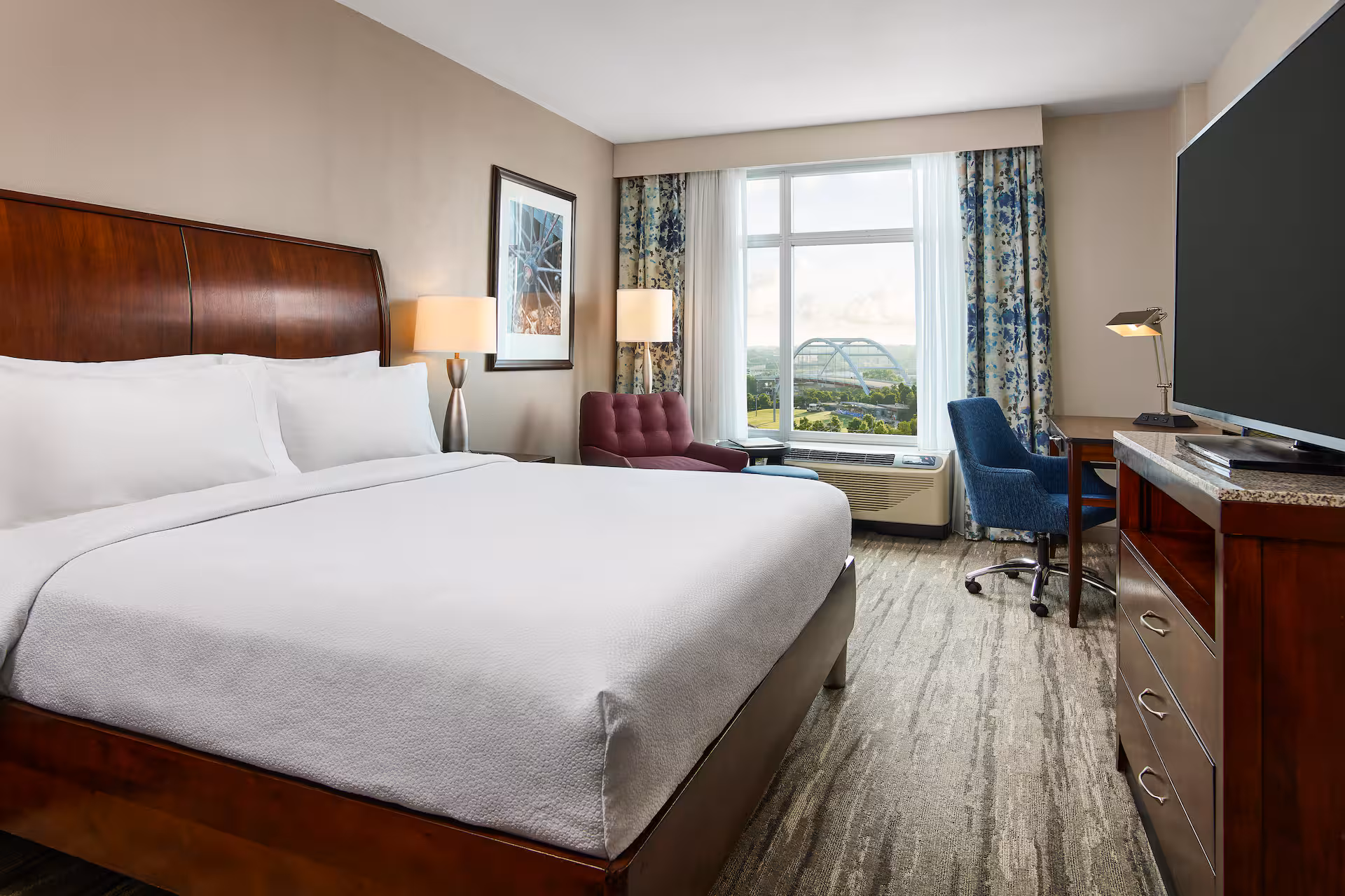 $124 to $303 /nightThe Hilton Garden Inn Nashville Downtown/Convention Center is a pet-friendly hotel in a walkable downtown location, offering convenient access to nearby green spaces like Riverfront Park, Frankie Pierce Park, and Ascend Dog Park. Guests should be mindful of Nashville’s hot and humid summers when planning walks, and can request on-site pet services, treats, or bedding by notifying the hotel in advance. The property accommodates up to two dogs or cats (max 75 lbs each), ensuring a comfortable stay with designated pet-friendly amenities.