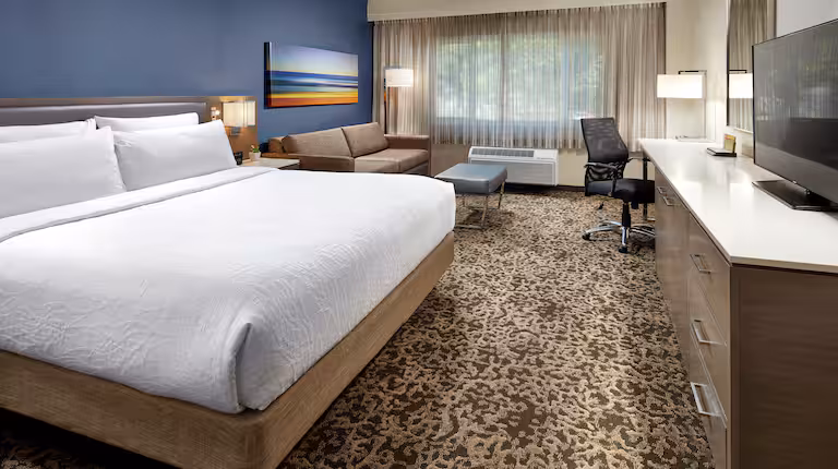 $136 to $311 /nightThe Hilton Garden Inn San Diego Mission Valley/Stadium offers a pet-friendly stay with access to several nearby parks, though its immediate surroundings are mainly busy roads and a strip mall, making on-site walking somewhat limited. San Diego’s mild climate is generally comfortable for pets, and guests can take advantage of nearby pet-friendly options such as Civita Dog Park and larger outdoor destinations like Mission Trails Regional Park and Balboa Park, which include designated off-leash areas. The hotel provides designated pet-friendly rooms and an on-site pet relief area, accommodating up to two dogs or cats per room, each weighing up to 75 lbs,