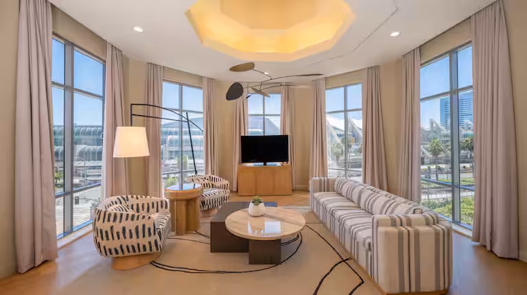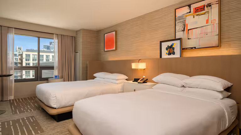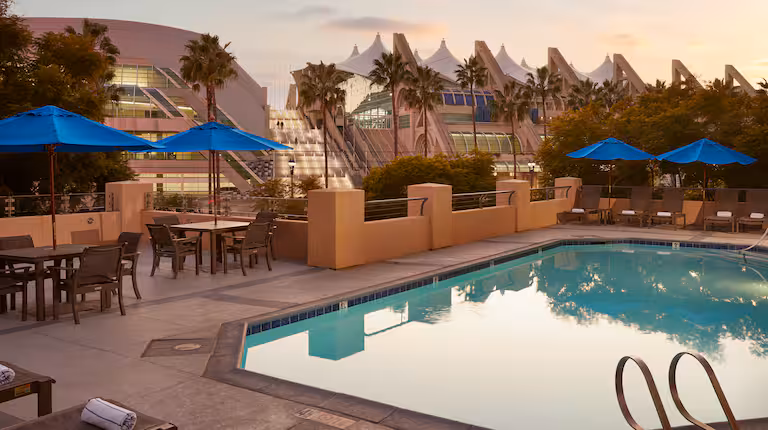 $160 to $405 /nightThe Hilton San Diego Gaslamp Quarter is well-suited for pets due to San Diego’s mild climate and the hotel’s excellent location near convenient, pet-friendly walking areas and amenities. The hotel is located across the street from The Dog Park at The Children’s Park, a fenced off-leash area, and is also within walking distance of several additional pet-friendly parks. Guests traveling with pets can request amenities such as pet beds and food or water bowls, and a grassy pet relief area is available just across the street, with a larger dog park nearby. The hotel’s pet policy allows up to two pets per room, each weighing under 75 lbs, for a non-refundable pet fee, and pets may not be left unattended in guest rooms.