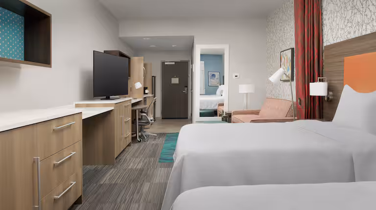 Home2 Suites By Hilton Miami Doral is pet friendly because it offers a relaxed and welcoming setting that makes traveling with pets easy. The hotel is located in a calm, walkable area with sidewalks and open surroundings that are ideal for daily pet walks, while Miami’s warm climate allows pets to enjoy outdoor time year-round. Guests also have convenient access to nearby pet-friendly places such as local neighborhood parks, walking paths in the Doral area, and outdoor shopping and dining areas that welcome pets, giving pets plenty of opportunities for fresh air and light exercise. Inside, the hotel’s spacious suite-style accommodations and welcoming pet policy help pets feel comfortable and at home, ensuring a pleasant and stress-free stay for both guests.