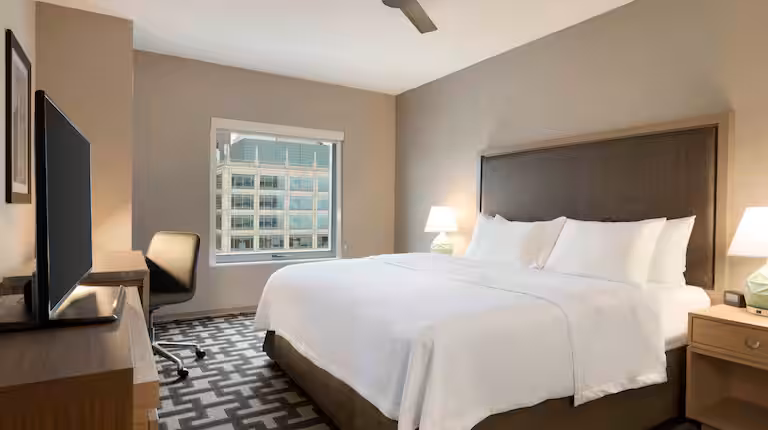 $160 to $400 /nightHomewood Suites by Hilton Chicago West Loop Fulton Market Area is a pet-friendly hotel because it is located in the walkable, lively West Loop neighborhood, offering a safe and comfortable urban environment with sidewalks, pet-friendly restaurants, and nearby green spaces such as Skinner Park for daily walks. While the area features mostly smaller neighborhood parks and urban greenways rather than large natural spaces, it remains well suited for pets in a fast-paced city setting. The hotel accommodates up to two dogs or cats weighing up to 75 pounds in designated pet-friendly rooms for a reasonable per-stay fee, with spacious suite-style accommodations providing added comfort for both pets and their owners.