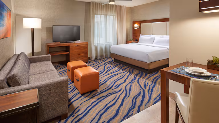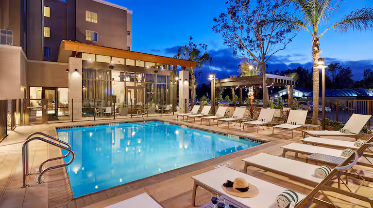 The setting at Homewood Suites by Hilton San Diego Mission Valley/Zoo is generally good for pets due to San Diego’s mild climate and the hotel’s pet-friendly amenities, though the immediate surroundings are mostly commercial and typically require driving to reach better walking areas. Several nature areas and parks are within easy reach, including fenced dog parks and larger natural spaces suitable for leashed walks. The hotel accommodates up to two dogs or cats per room, each weighing up to 75 lbs, and provides on-site pet relief areas with waste stations along with access to Mars Petcare resources for added guest support. A non-refundable pet fee of $75 applies for stays of 1–4 nights.