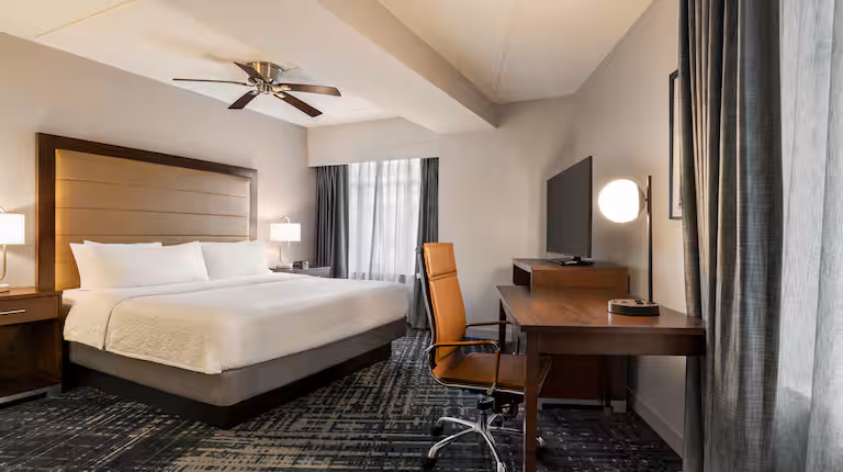 Homewood Suites by Hilton Washington, D.C. Downtown is pet friendly because it provides a central city location that combines convenience with comfort for pets and their owners. The surrounding streets and sidewalks offer safe, accessible walking routes, while nearby green spaces such as Franklin Square, McPherson Square, and areas around the National Mall give pets room to stretch, explore, and enjoy fresh air. With spacious suite-style accommodations, a flexible pet policy, and a welcoming, home-like environment, the hotel ensures a relaxed and enjoyable stay for both pets and their families.