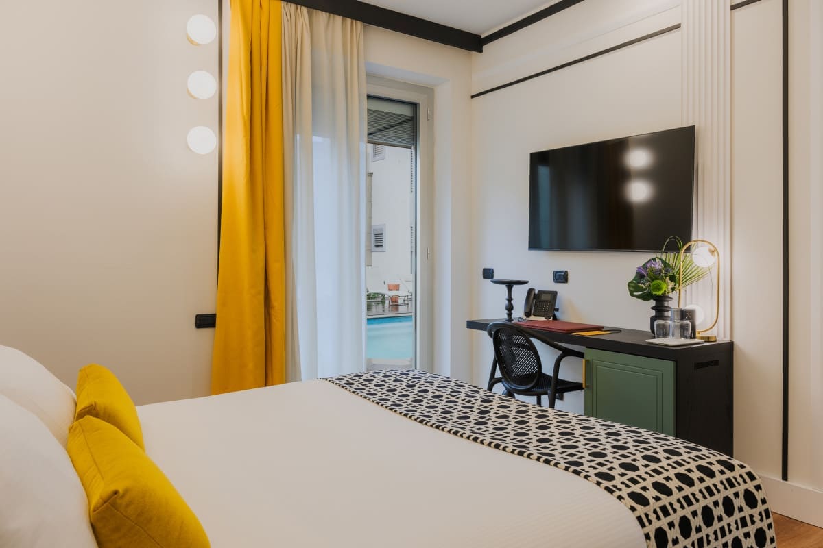 €115 to €261 /nightJOIVY Together Florence Urban Resort is pet-friendly and located in the green hills of Bagno a Ripoli, offering a peaceful setting with an on-site garden of olive trees and access to Tuscan nature, while Florence’s mild climate makes walks comfortable most of the year. The resort allows one pet per booking with a maximum weight of 10 kg, and pets stay free, with service animals also welcomed at no charge. For added comfort, the hotel provides food and water bowls upon request at the front desk, though guests seeking larger green spaces for extended walks will need to venture beyond the property to nearby parks and countryside trails.