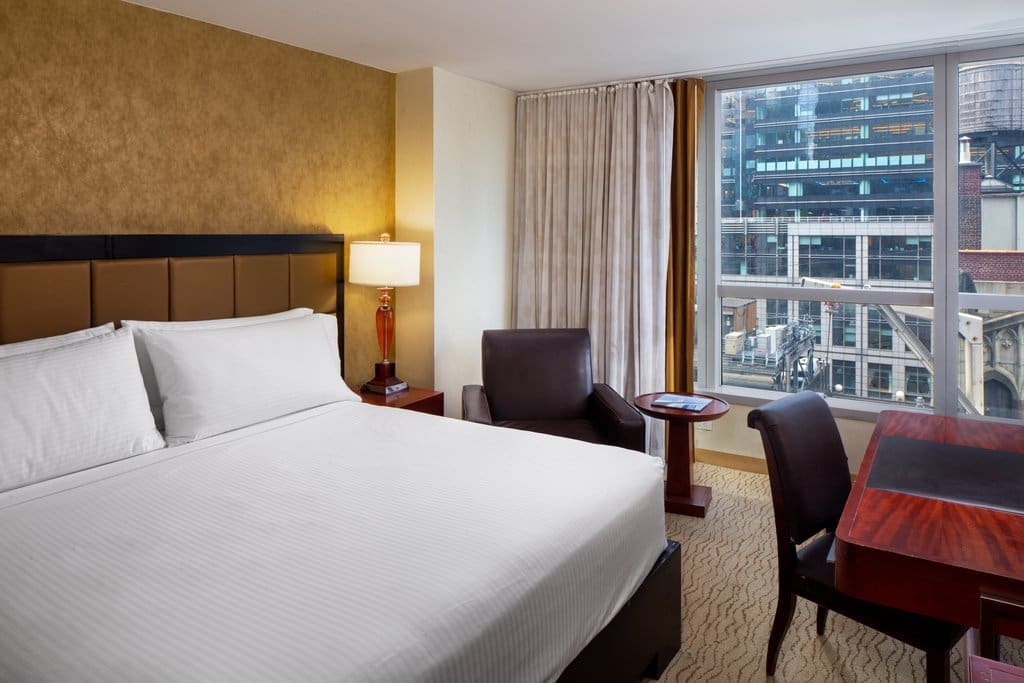 $190 to $600 /nightWe are a pet-friendly hotel because we want guests to travel with their dogs and cats without sacrificing the convenience of staying in the heart of Manhattan. Our Canine Concierge and designated pet-friendly rooms help match owners with suitable accommodations and nearby outdoor options, with Bryant Park just a five-minute walk away and Central Park within about 18 minutes on foot for leashed strolls and scheduled off-leash adventures. While our Times Square surroundings are vibrant and busy with concrete-heavy, climate-extreme seasons, our indoor environment offers reliable climate control, Wi-Fi, gym access, and supportive amenities, and we encourage owners to confirm fees, weight limits, and crating rules directly with us for the best experience.