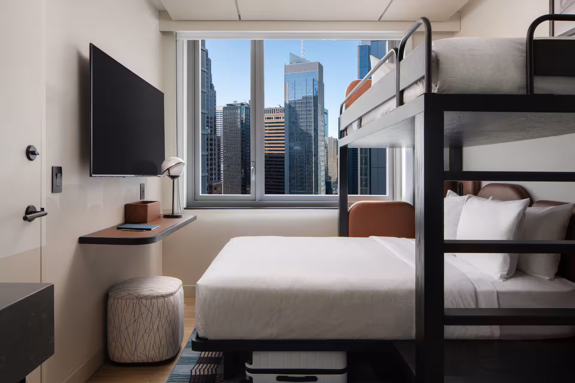 $129 to $300 /nightMotto by Hilton NYC Times Square is a pet-friendly hotel because our central Midtown location makes city stays with pets practical and comfortable, with nearby green spaces like Bryant Park just a short walk away and Central Park easily reachable by subway or taxi for longer outings. Our designated pet-friendly rooms welcome up to two pets within the weight limits and provide in-room comforts such as food and water bowls, with additional amenities like pet beds available upon confirmation directly with us. We also maintain policies that prioritize safety and wellbeing, including required leash use in busy areas like Times Square and the rule that pets may not be left alone, while our climate control and A/C ensure a calm retreat after navigating urban crowds and sidewalks.