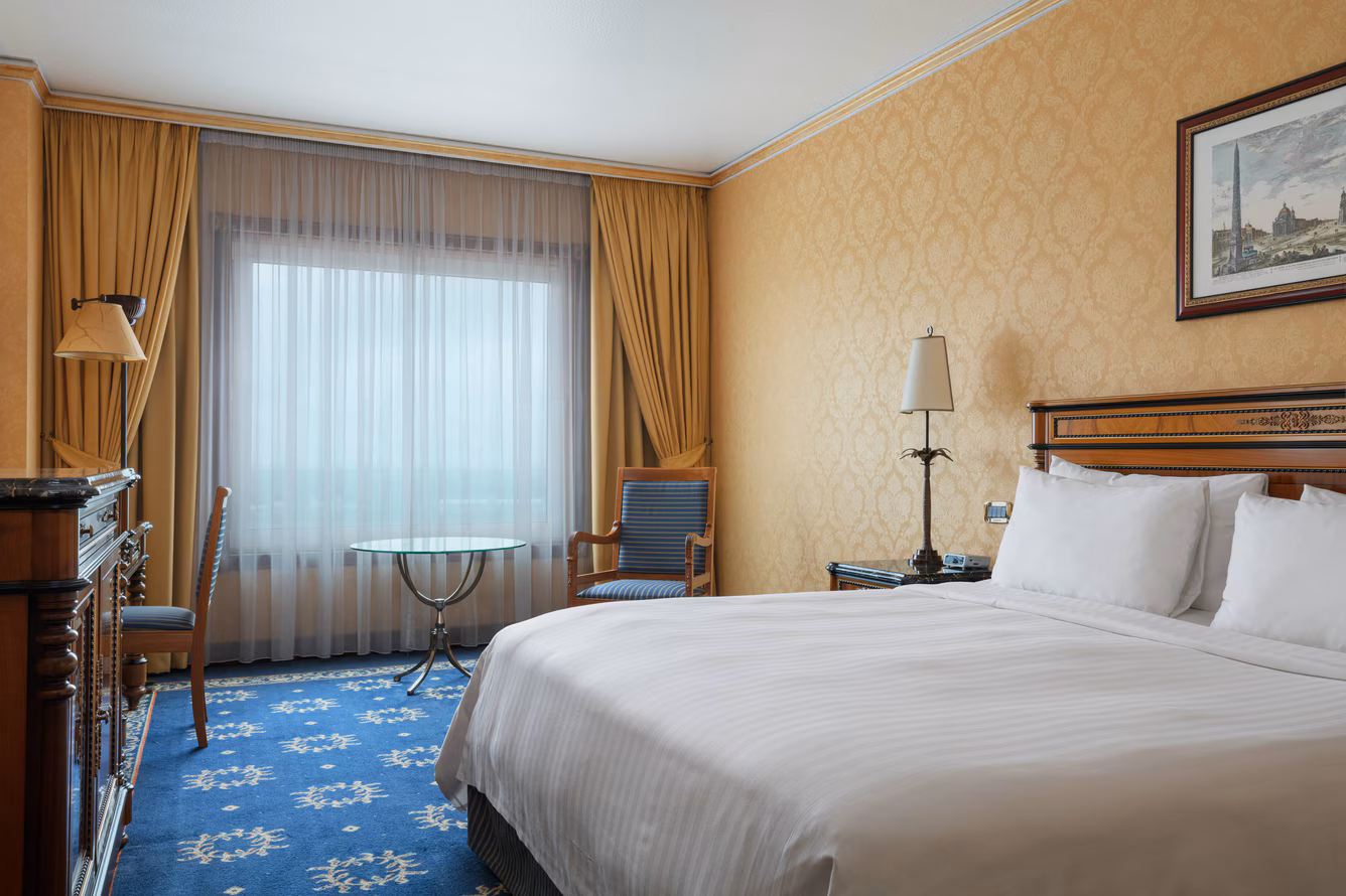 €126 to €150 /nightAt the Rome Marriott Park Hotel, we go the extra mile to make your furry friends feel welcome. Our setting provides space and opportunities for pet walks, with green areas nearby and an adjacent golf course offering fresh air and open surroundings. While we’re just outside the bustle of central Rome, guests can easily reach beautiful parks such as Villa Borghese for more expansive strolls and nature time with their pets. To ensure every pet feels right at home, we offer our exclusive “Paws & Relax – Dog Friendly Rooms” package. This includes special comforts like a cozy dog bed, food and water bowls, a mat, welcome treats, toys, and even a bundle of essentials like poo bags upon check-in. From safe walking options to thoughtful in-room amenities, we’ve designed our hotel experience to give both you and your four-legged companions a truly comfortable stay.