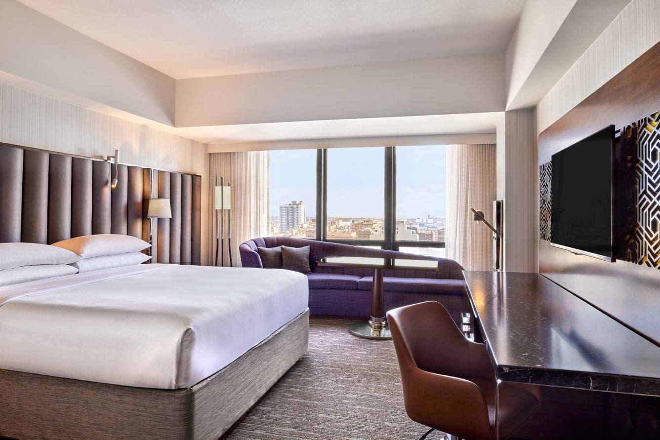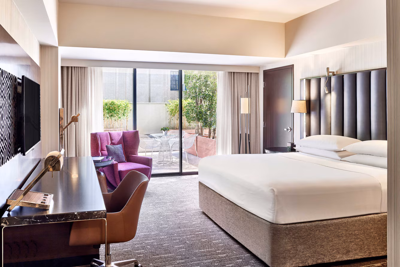 $168 to $300 /nightThe Sheraton Grand Los Angeles is a pet-friendly hotel in the heart of DTLA, offering dog-friendly rooms and amenities like beds and bowls, typically welcoming one dog up to 25 lbs for a fee of around $75 per stay, with pets not allowed to be left unattended unless crated. Its central location makes it easy to explore Los Angeles’s pet-welcoming atmosphere, with a small fenced off-leash dog park just two blocks away and another within Grand Park. For longer on-leash walks, nearby options include Vista Hermosa Natural Park, Los Angeles State Historic Park, Elysian Park, and Echo Park Lake, with resources like BringFido and the LA Parks website helpful for up-to-date details.