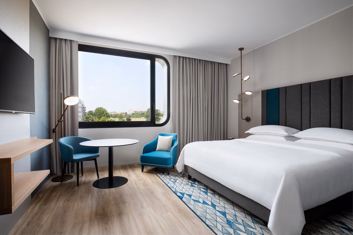 €150 to €300 /nightAt Sheraton Milan San Siro, pets are welcomed with a safe and quiet setting that includes a secure garden and outdoor terrace, ideal for walks and relaxation. While the immediate hotel grounds are not extensive, guests can enjoy the nearby residential areas for strolls, and just across the street lies the expansive Parco di Trenno, a large green space perfect for exercise and play. For added comfort, the hotel offers thoughtful pet-friendly amenities such as food and water bowls, a cozy pet bed, and a “Pet-in-Room” sign, ensuring both pets and their owners enjoy a comfortable and stress-free stay.