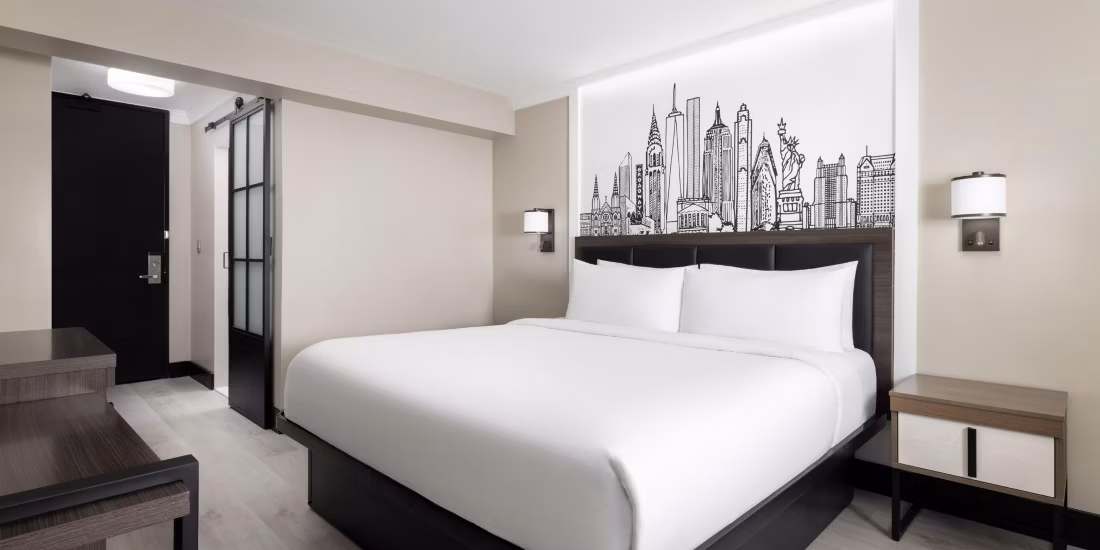 $120 to $500 /nightThe Manhattan at Times Square is a pet-friendly hotel with the major advantage of a central Midtown location that makes urban walks and park visits convenient, though NYC leash laws and seasonal weather require mindful planning. Pet owners typically rely on nearby city parks such as Bryant Park, along with longer outings to the Hudson River Park or Central Park—easily reached by subway or a moderate walk—for shady paths and designated dog runs. Guests can stay with dogs up to 75 lbs in approved pet-friendly rooms, where comforts like bowls, beds, and treats are often available, but the reported pet fee (around $250 per stay) and rules such as crating unattended pets must be confirmed directly with the hotel at booking or check-in for a seamless experience.