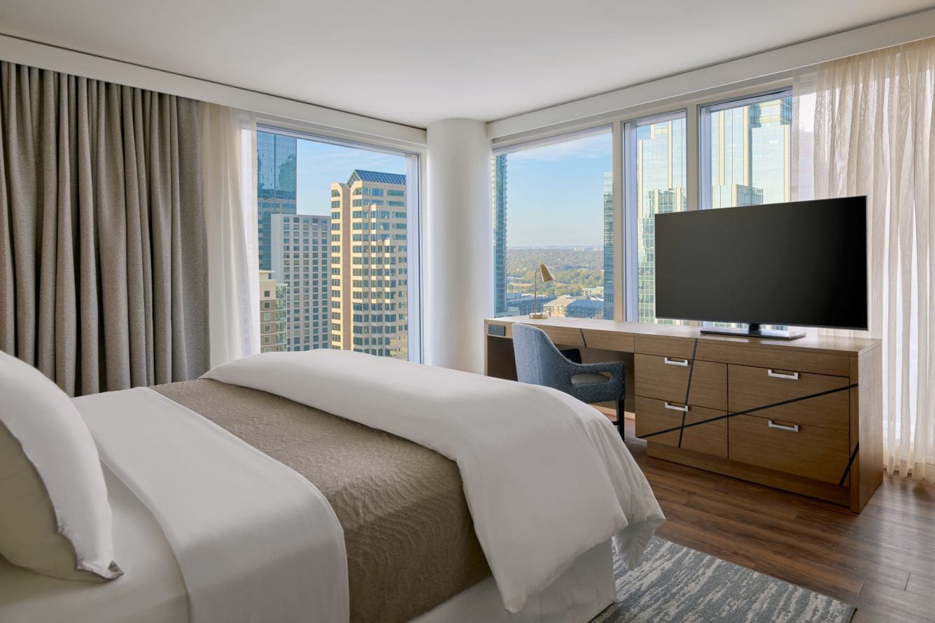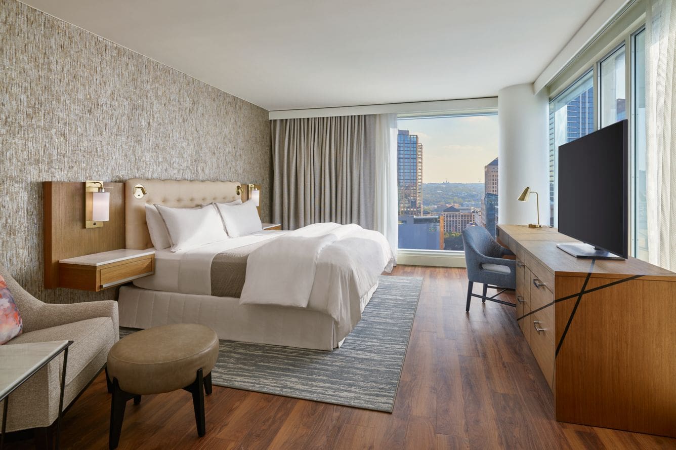 $200 to $600 /nightThe Westin Austin Downtown is a pet-friendly hotel that embraces Austin’s dog-friendly culture by offering a great setting and dedicated amenities through its “Dog Program”. The hotel welcomes dogs of any size for free, providing cozy pet beds, water bowls, tasty treats, and a guide to local dog-friendly spots, ensuring a luxurious and comfortable experience in the room. Located in a super central, safe, and walkable downtown area, the hotel provides guests with maps to nearby green spaces—such as Lady Bird Lake (Ann and Roy Butler Hike-Bike Trail) for scenic walks and the broader Zilker Park area—since it lacks an on-site relief area. For off-leash fun, major dog parks like Red Bud Isle are just a short ride away, making it convenient for urban explorers and their pups, with the primary rule being that pets cannot be left unattended in the room.