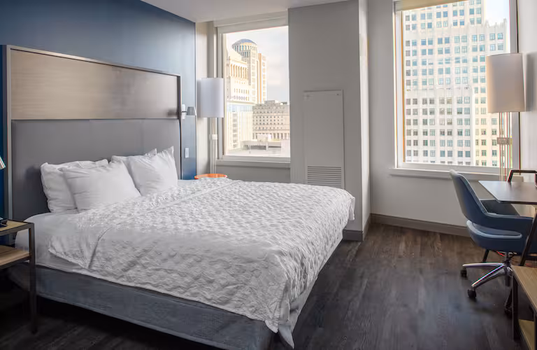 $90 to $250 /nightTru by Hilton St. Louis Downtown is a pet-friendly hotel that welcomes up to two dogs or cats for a pet fee, providing a comfortable stay with thoughtful amenities such as designated potty areas, pet-friendly rooms, and the option to leave pets crated when unattended. Located in the heart of downtown, the hotel offers easy access to nearby green spaces like Lafayette Square, Citygarden Sculpture Park, SLU Dog Park, and larger parks such as Gateway Arch National Park and Forest Park, ideal for leashed walks and outdoor activity. With its central location, clear pet policies, and convenient pet-focused facilities, Tru by Hilton St. Louis Downtown ensures a safe, enjoyable, and stress-free experience for both pets and their owners.