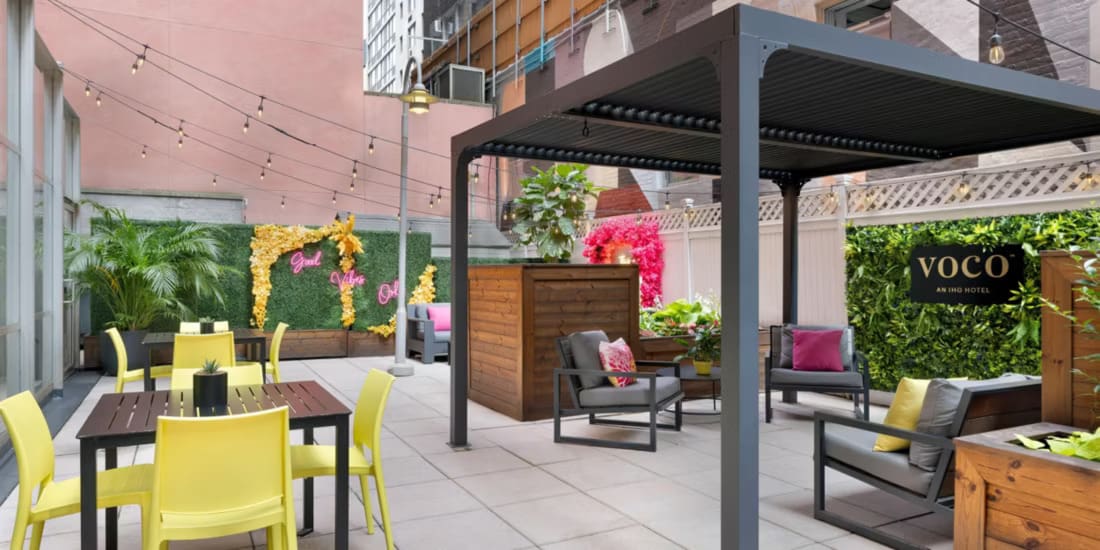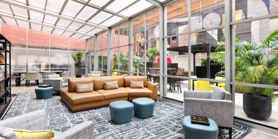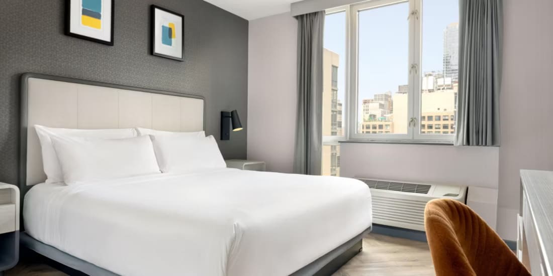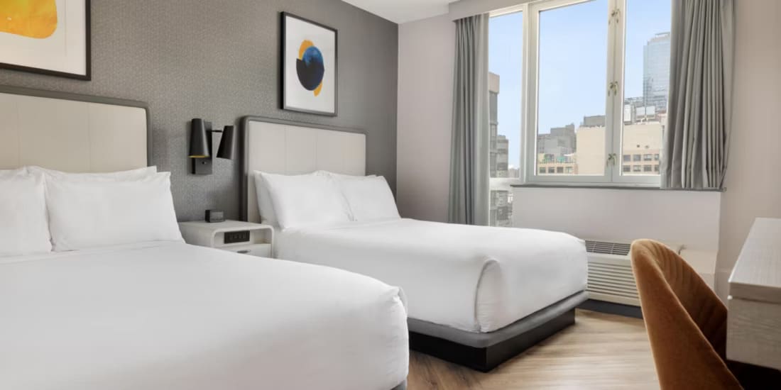 $130 /nightvoco Times Square South offers a pet-friendly stay for dogs and cats up to 50 lbs, with fees applying, and provides a comfortable base in Midtown Manhattan for owners exploring NYC sights. Because the property has limited grounds of its own, guests mainly rely on the neighborhood’s walkability and convenient transport to reach suitable outdoor spots such as Hudson River Park, Chelsea Piers dog run, and the High Line for on-leash walks and relief breaks, whether by a longer stroll or a short rideshare/subway trip. The experience is shaped by typical New York climate—hot summers and cold winters—and by the hotel’s specific pet policy, so amenities like beds or bowls and any rules about unattended pets should be confirmed directly with the property in advance. Note: $50-$75 per stay
